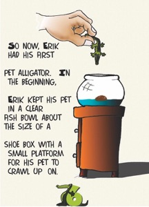 A seriously fun romp that examines the pitfalls of having an alligator for a pet!! A must read for any child, including ‘big kids’!! ;)